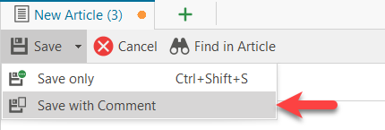 By activating versioning, an additional option is available to you via the corresponding pull-down menu when saving. You can save an article with a comment and use it to describe your changes.
