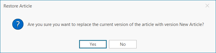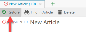 An article version can not only be displayed, it can also be restored, i.e. an earlier version can be restored to the latest version of an article. This can make it much easier to correct incorrect changes. To do this, open the previous version and click on "Restore" in the toolbar of the tab.