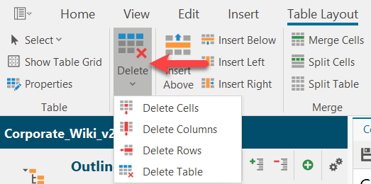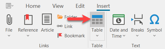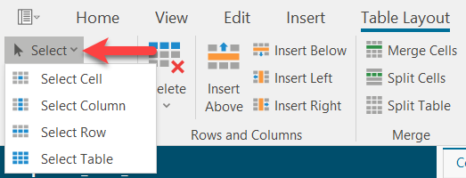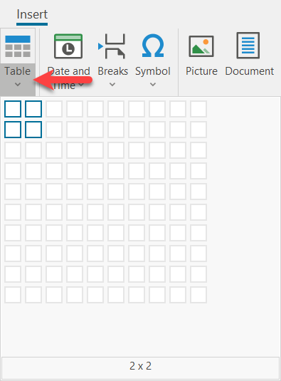 Alternatively, you can use the pull-down menu and create a table very quickly by selecting the appropriate boxes.