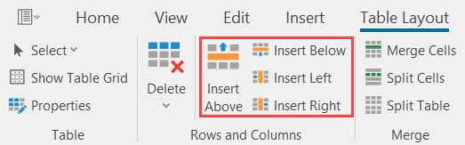 as well as insert additional columns and rows anywhere in the table.