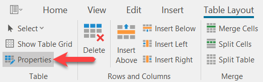 Click on "Properties" in the "Table" function bar to adapt the properties of a table to your requirements. If you only want to adapt a part of the table, select it beforehand with the help of the mouse or via "Select" in the function bar (see above).