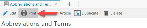 The easiest way to print single articles is to use the function "Print" from the toolbar.