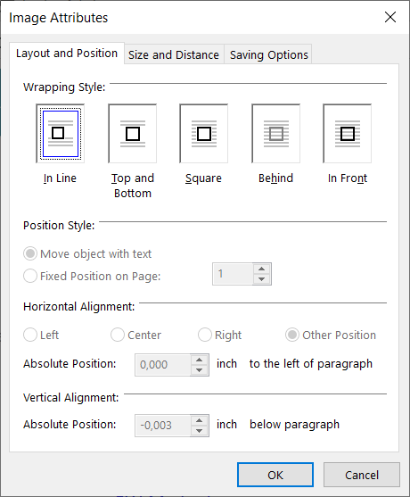 In order for images to be positioned in the right place on the Web browser, the "Wrapping style" of the image must be set to "In Line".