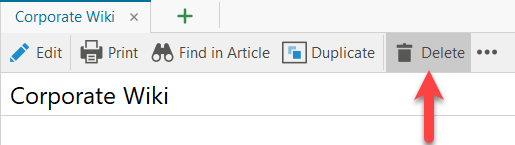 Select and open the article via index or outline and then click on "Delete" in the toolbar of the article, e.g.