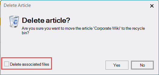 In all cases, you must confirm the operation and can decide here whether the file attachments associated with the article should also be deleted. Please note in this context that a file can be associated with several articles.