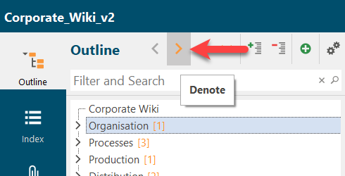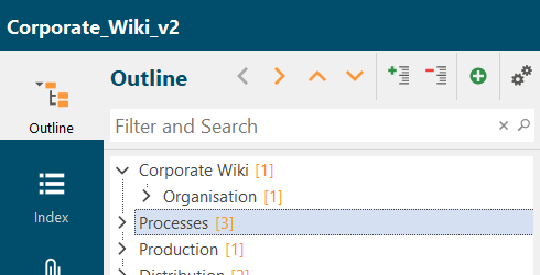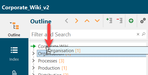 You can also make this change using drag'n drop. To do this, select the article concerned. Hold down the left mouse button while moving the article to the desired position within the outline, e.g.