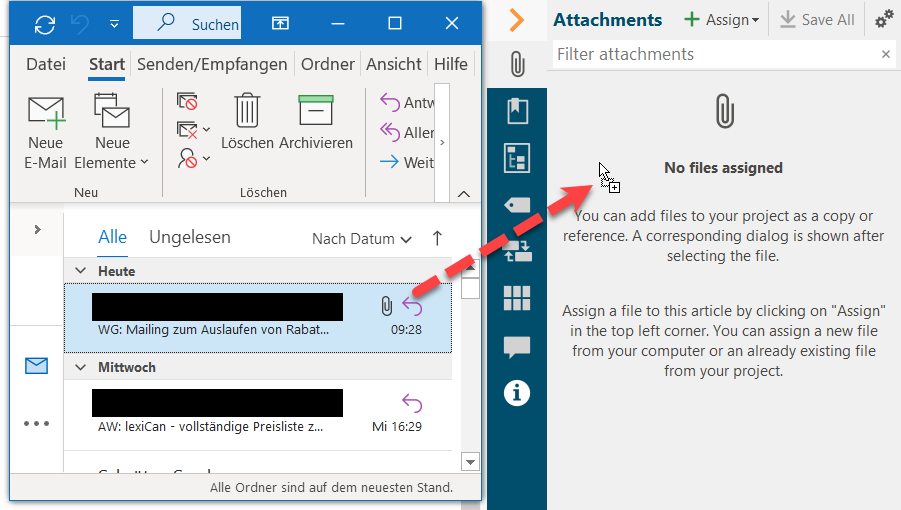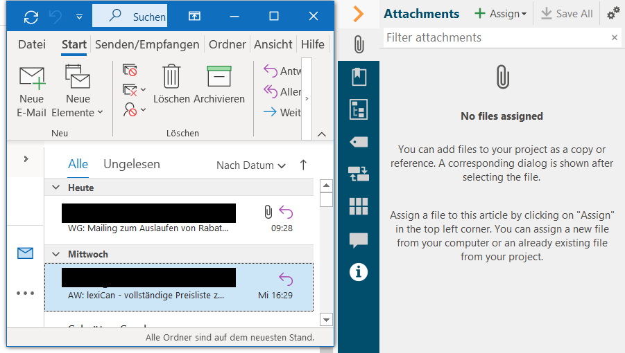 As described in the article Links to Files, lexiCan allows articles to be easily linked to files. Since e-mails are also individual files, this possibility also exists for them - at least for the e-mail programs we tested, MS Outlook and Thunderbird.