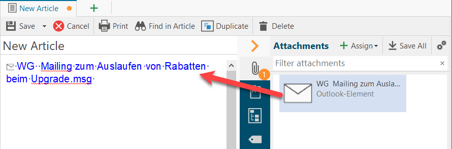 Inserting the link from the email program directly into the article is not possible for technical reasons.