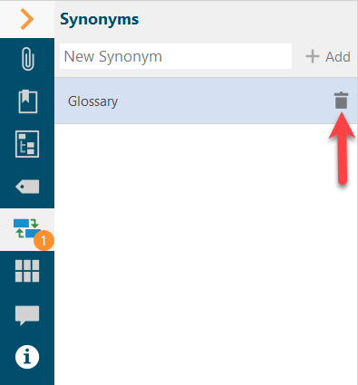 Deleting a synonym is done via the recycle bin icon.