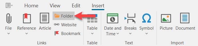 Take the article in question in editing, place the cursor at the point in the article where the link is to be inserted or mark the text passage that is to carry the link. Then click on "Folder" in the "Insert" toolbar.