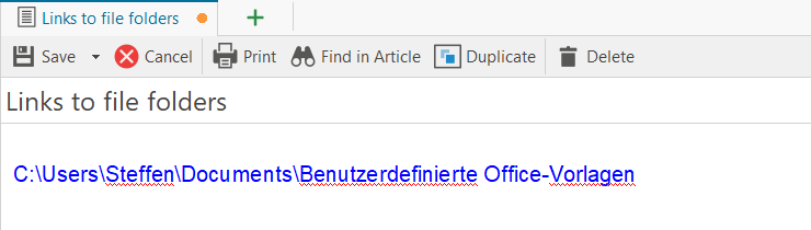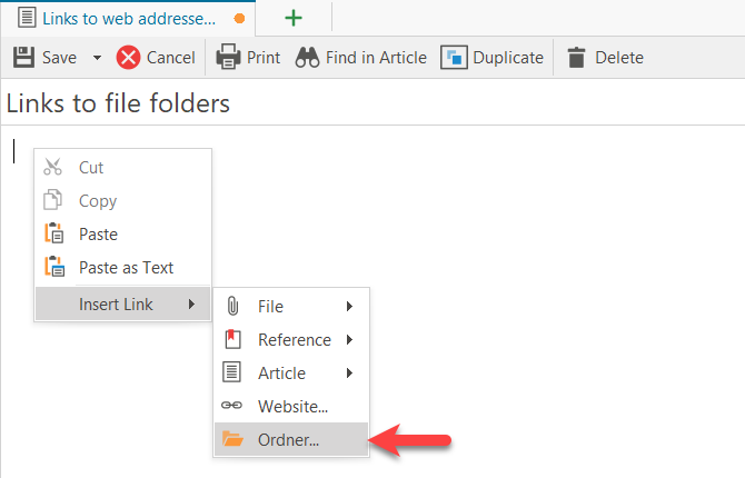 If an article is linked to many files, it can make sense to put a link to the corresponding file folder in the network that contains the files instead of links to all files. Depending on the case, this way is more independent, e.g. with regard to the naming of the files.