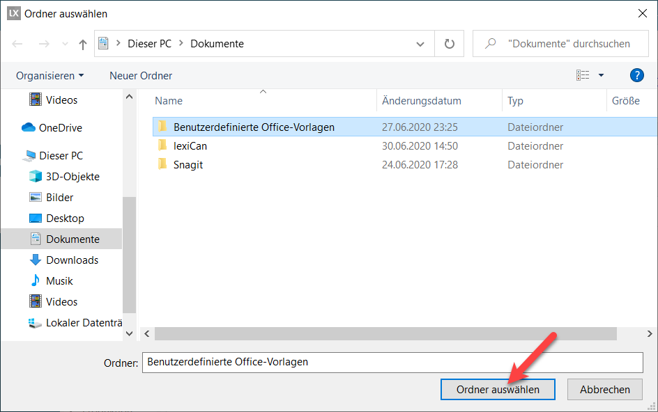 Then navigate to the relevant file folder in the Windows dialogue window and confirm your selection, e.g.