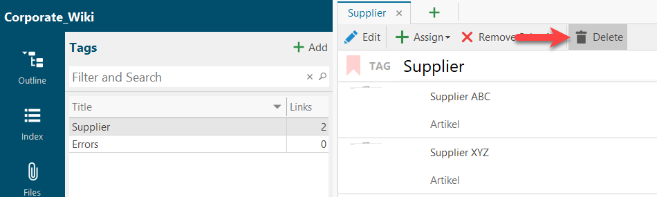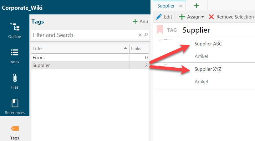 All tags are listed in a separate list with the number of assigned articles, references and files in the navigation pane.