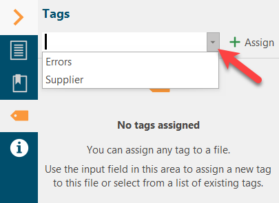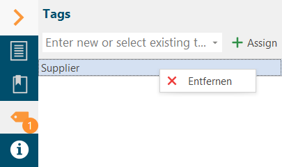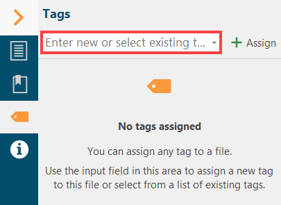 A context area is available on the right for each article, reference and file. There is a separate area for tags. Type in here the tag you like to assign or use the pull-down menu to choose an already existing tag from a list