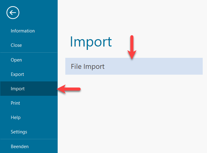Open the main menu and first click on "Import" then on "File Import".