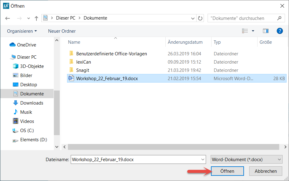 Navigate to the relevant file in the dialogue window and confirm your selection via "Open".