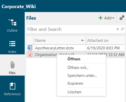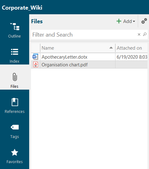 lexiCan allows you to attach files to articles and references. These files are listed in the navigation under "Files".