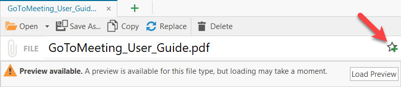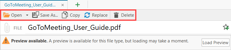 If you click on an entry, a tab opens with all the information about the file and the possibility to preview it. Via the toolbar you can open the file, save it locally, exchange it and copy it to your computer's cache for further use.