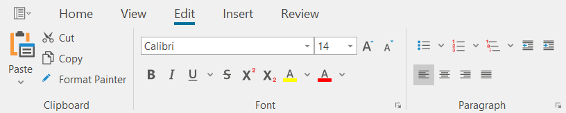 You are supported by the "Edit" function bar. Here you will find all the functions for inserting and designing text, including the use of style sheets, the spell checker and the possibility to define specific page settings.