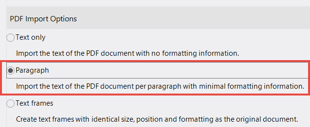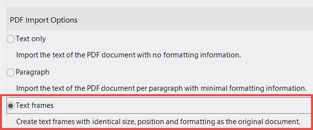The third option allows you to display text in frames. This allows the original layout of the PDF document to be retained and - not unimportant - image components to be taken into account.